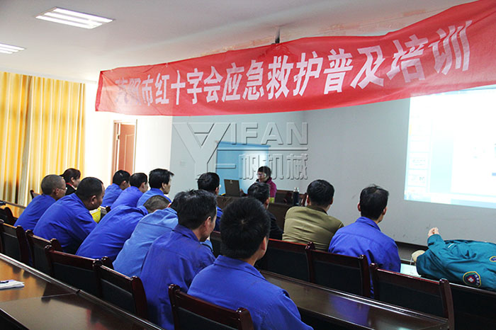 2014年11月8日上午9:10,滎陽(yáng)市紅十字會(huì)應(yīng)急救護(hù)普及培訓(xùn)在一帆機(jī)械四樓會(huì)議室進(jìn)行,由滎陽(yáng)市人民醫(yī)院急診科護(hù)士長(zhǎng)趙建萍進(jìn)行講授。培訓(xùn)內(nèi)容主要包括應(yīng)急救護(hù)新概念、心肺復(fù)蘇、擠壓傷的處理等。