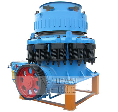 彈簧圓錐破碎機工作時,由電動機通過三角帶、大帶輪、傳動軸、小錐齒輪、大錐齒輪帶動偏心套旋轉,破碎圓錐軸心線在偏心軸套的迫動下做旋轉擺動,使得破碎壁表面時而靠近又時而離開軋臼壁的表面,從而使物料在定錐與動錐組成的環形破碎腔內不斷地受到沖擊、擠壓和彎曲而破碎。經過多次擠壓、沖擊和彎曲后,物料破碎至要求粒度,經下部排出。 廣泛應用于冶金、建筑、水電、交通、化工、建材工業中, 適合破碎堅硬、中等硬度以上的各種礦石和巖石。