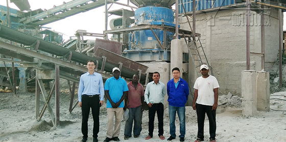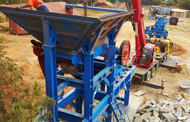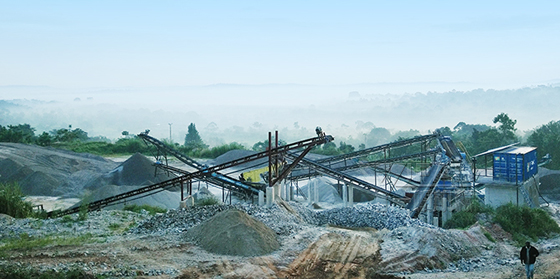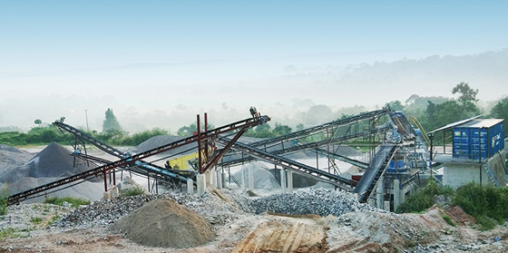 大塊石料由振動給料機均勻地送進顎式破碎機進行粗碎;粗碎后的石料由膠帶輸送機送到圓錐破碎機進一步細碎;細碎后的石料由膠帶輸送機送進圓振動篩進行篩分,以達到我們需求的精細物料。整個生產流程根據環保需要,可配備除塵設備。