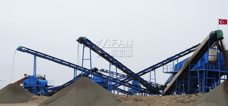 阿塞拜疆這條生產(chǎn)線主要用于破碎石塊梳理。它生產(chǎn)出的高質(zhì)量物料可以用于高速公路,鐵路,水電站和混凝土攪拌站建設(shè)中。客戶可以根據(jù)自己的實際需要選擇相應(yīng)的配置。