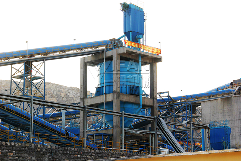 設備:振動給料機+細碎顎式破隨機+振動篩+立式沖擊破碎機+粗細粉分離機+除塵裝置