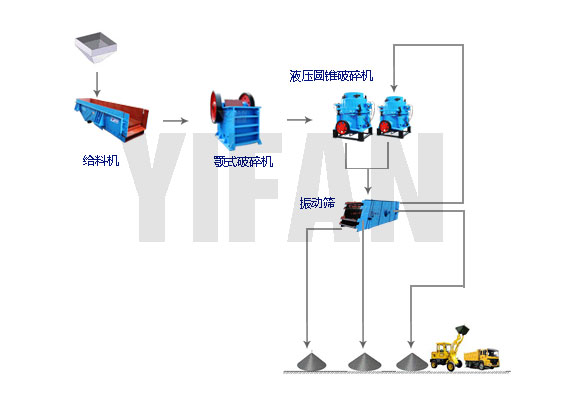 鐵礦石選礦破碎工藝: 鐵礦石選礦,根據礦石的種類和性質,可以有多種不同的工藝流程。選礦廠一般采用粗破、中破和細破三段破碎流程破碎鐵礦石。粗破多用顎式破碎機,中、細碎使用圓錐式破碎機。通過粗破的礦石,然后經過中、細破碎成適合進入球磨機的物料粒度。 鐵礦石由振動給料機均勻地送到顎式破碎機進行粗破,粗破后的物料由膠帶輸送機送入到粗碎圓錐破進行進一步破碎,破碎后的物料被輸送到振動篩進行篩分,達到成品粒度要求的物料通過膠帶運輸機輸送到成品料堆;未達到成品粒度要求的物料從振動篩返回中碎或細碎圓錐破加工,形成閉路循環。成品粒度可按用戶的需求進行組合和分級。? ? 鐵礦石選礦破碎工藝性能: 該鐵礦石選礦破碎生產線自動化程度高、破碎率高、運行成本低、節能環保、粒度細。山美為客戶提供完善的工藝流程方案及技術支持,亦可根據客戶的實際安裝條件設計非標配套部件等。