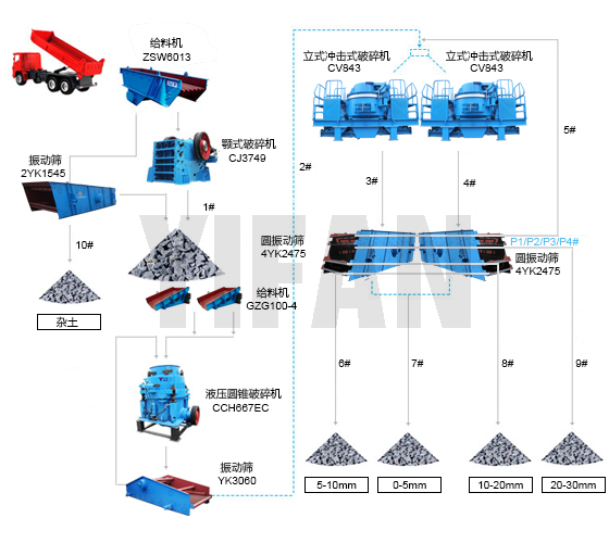 注:此工藝流程僅供參考,圖中所有參數(shù)不代表實際參數(shù),最終結果根據(jù)石料特性不同而會有所出入。